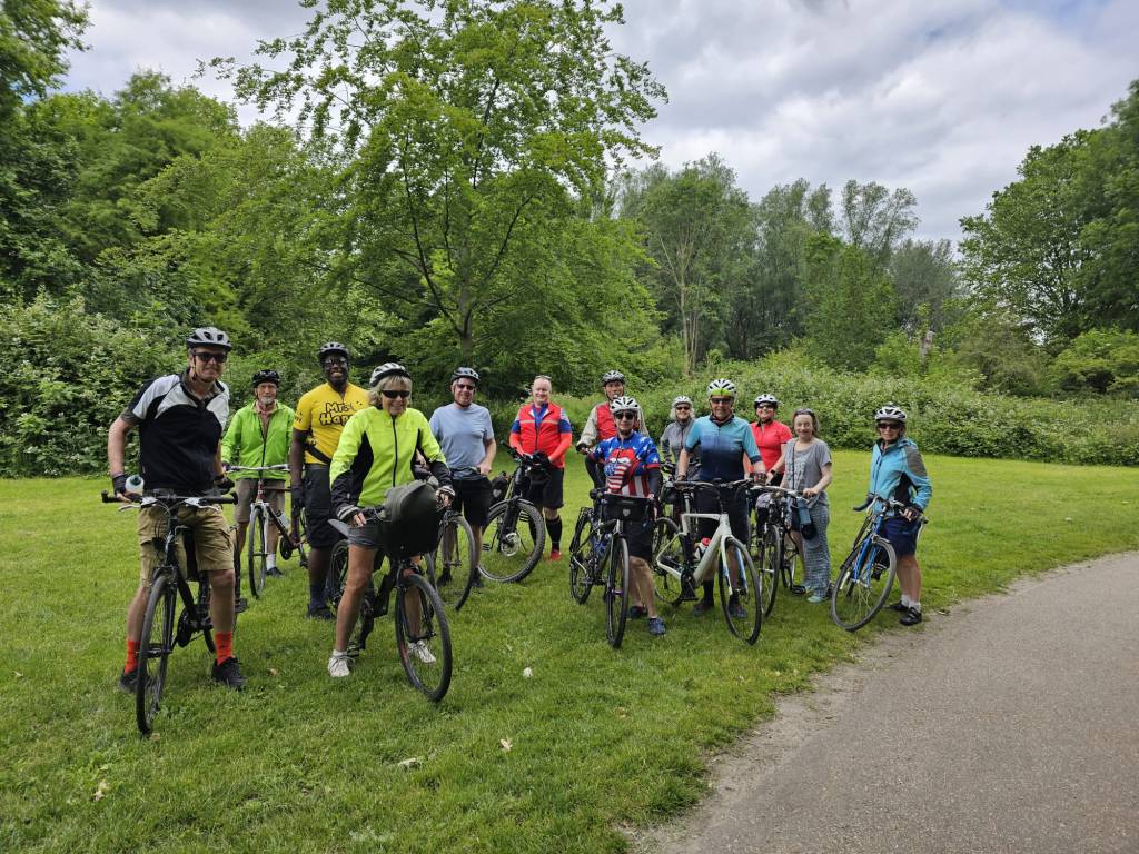 Sunday 9th June. A Bright sunny morning, with more cloud in the afternoon, after 1 late cancellation, 23 Cyclists, split into 2 groups, leaving via Fairfield, Norbiton, New Malden, Raynes park, Wimbledon chase, Merton park, Morden Hall Park (Photo 1 & 2), the simply splendid Wandle trail including Ravensbury Park, Mitcham & Hackbridge to Carshalton, continuing on NCN 20, Little Woodcote, to Woodmansterne, for lunch at the Woodman (Stonegate Pubs),- then with One of group 1 needing a little more Air in a Tyre, group 2 took the lead-, Banstead, -Group 1 almost snatching the lead back 😉-. Burgh heath, Tattenham corner, Epsom, Epsom Common, to the Old Moat Garden centre Cafe for refreshments, Manor park, Long Grove Park, St Ebba’s path, a brief bit of Hogsmill path, West Ewell, Tolworth- with a touch of Wheels, causing a fall, thankfully no lasting damage-, Berrylands, to finish back in Kingston. Total 29 Miles, Special thanks to Bai for leading group 2, thanks to Amy & Ellie for back marking each group.