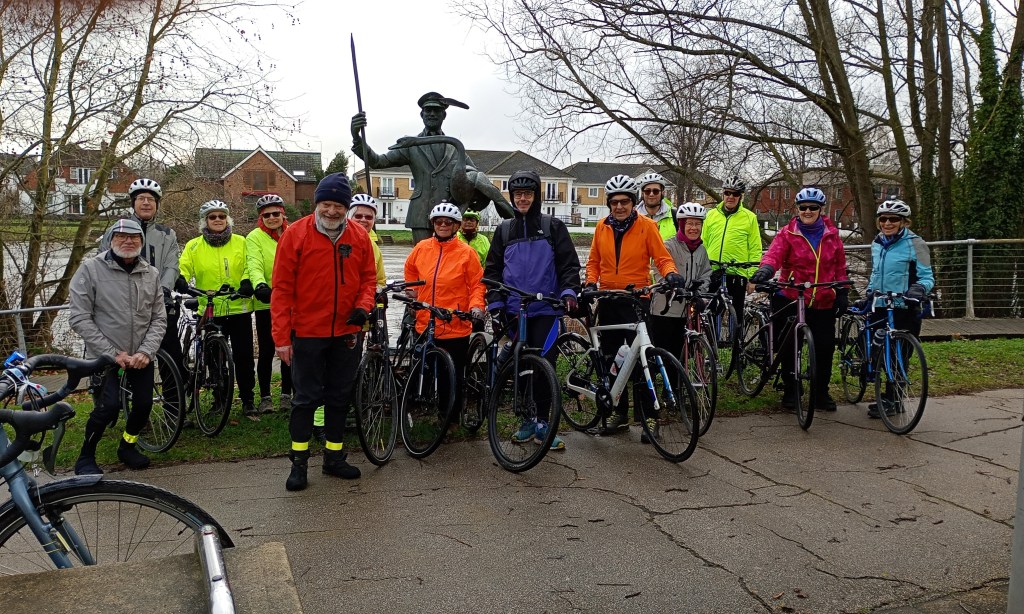 Sunday 25th January, A mostly cloudy day, with some light Drizzle, after 3 late cancellations, it was decided to go with just 1 group of 16 Cyclists, via Kingston Bridge, Bushy Park, Hampton, Hanworth, Sunbury, Ashford, Knowle Green, Staines (Photo, with a Swan upper), Egham, Pooley, Stroud, to Thorpe Green for lunch at the Rose & Crown (Barons Pubs), Lyne, Bretlands, Addlestone, Victory Park, Weybridge, to Walton for Tea & refreshments at the Riverside barn (a new Tea venue), -alas 1 person had suffered a visit from the ‘P fairy’, withh a protracted repair-, more Walton, Esher, Weston Green, Giggshill Green, Portsmouth Rd to finish back in Kingston. Total 31 Miles. Thanks to Andrea C for being ready to lead group 2, thanks to Andrea E & Celia for sharing the back marking. Post ride I did present my award for ride assistant of 2025 to both Andrea C & Celia. Map:- www.plotaroute.com/route/2802886