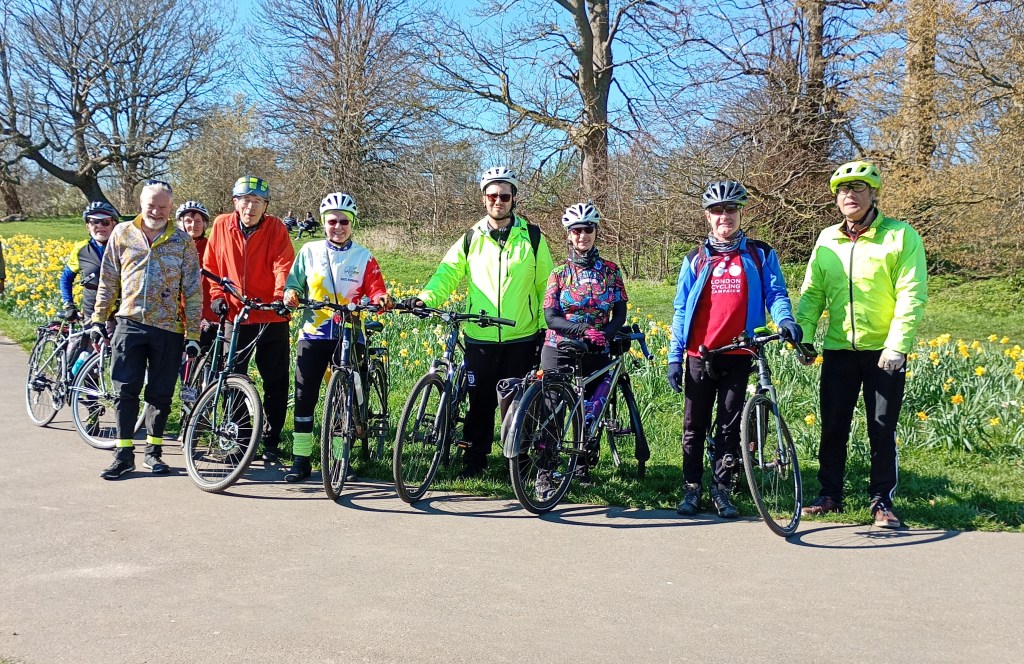 Wednesday 18th March, A very pleasant sunny day, with a slight Headwind at times, saw 20 Cyclists spliit into 2 groups, leave via the Beeline way, Raynes park, Wimbledon Chase, Merton park, Morden Hall Park, Colliers wood, Tooting- Group 1 joined by 1 more-, Graveney, Streatham vale, Norbury, Thornton heath, Heavers Meadow, Woodside, Ashburton Field, Shirley, Elmers End, Langley, to West Wickham for lunch at the Railway (Ember Inns), a different part of Shirley, Addiscombe, Lloyd Park (Photo’s x2), South Croydon, Waddon, Beddington, Beddington Park, to Carshalton for Refreshments at ‘Sassis in the Grove’, the Wrythe, Benhilton, Pyll Brook path, North Cheam, Joseph Hood Park, Motspur park, to finish back in New Malden. Total 31 Miles, special thanks to Pete Mastenko for leading group 2, thanks to Steve D & Celia for back mmarking each group. Map:- www.plotaroute.com/route/1579827