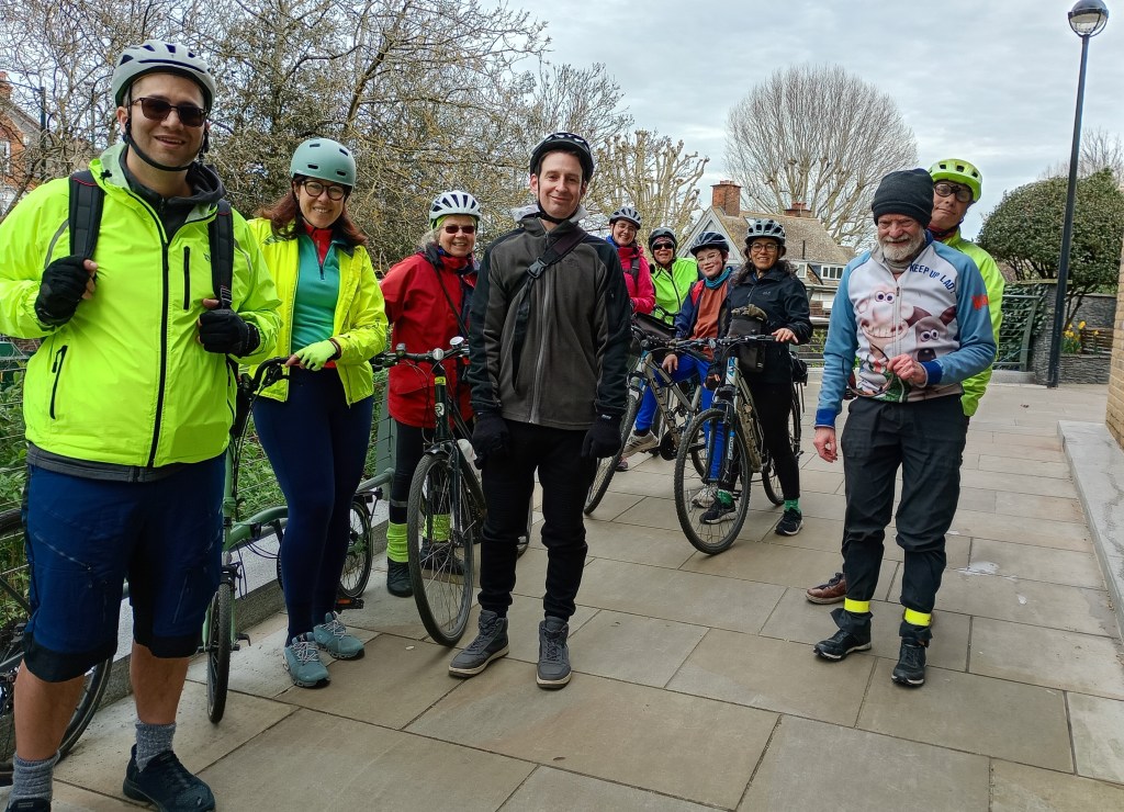 Part 1. A fairly bright Morning, with occasional glimpses of the Sun, with 2 late bookings, 22 Cyclists split into 2 groups, leave via the Station Bridge, North Kingston, Kingston gate Richmond Park, Tamsin trail, Petersham gate, Richmond, Richmond Bridge, St Margarets, Cole park, Twickenham junction Rough path- it’s actually quite nice- (Photo group 1), Fulwell, Teddington for lunch at the recently reopened Lion, -very helpful, friendly staff-, Hampton Wick, Kingston Bridge, to finish back in Kingston, Sub total 13 Miles, 4 new faces, special thanks to Steve F for leading group 2, thanks to Yee-liu & Toni for back marking each group. Map:- www.plotaroute.com/route/3254716