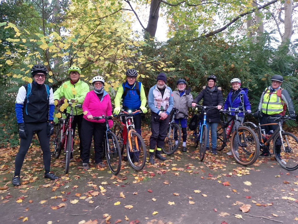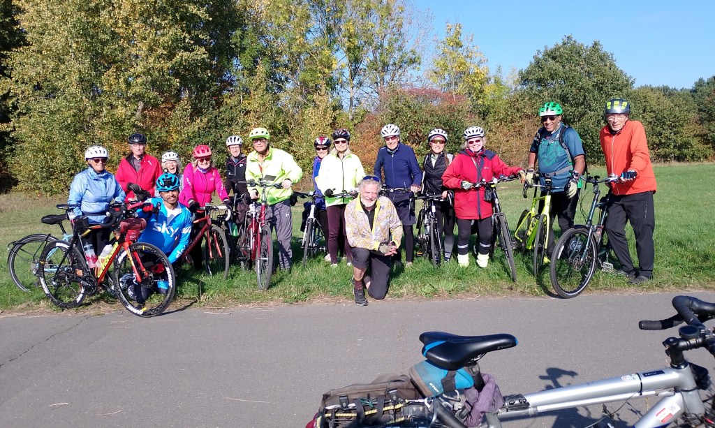 Sunday 6 October was our last family-friend ride of the year, with over a 100 riders setting off with us from Claremont Gardens, near Surbiton station. Route map on https://www.plotaroute.com/route/2701580.