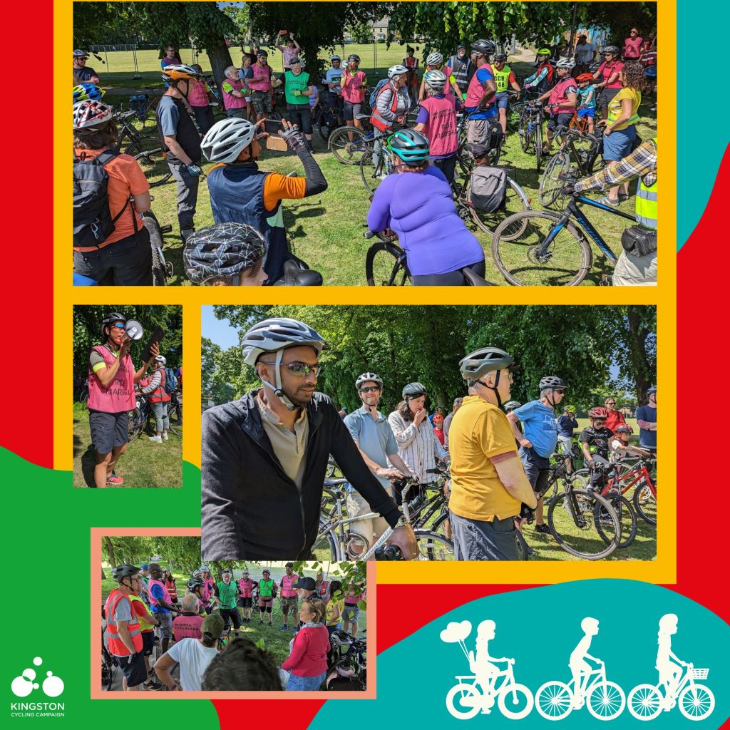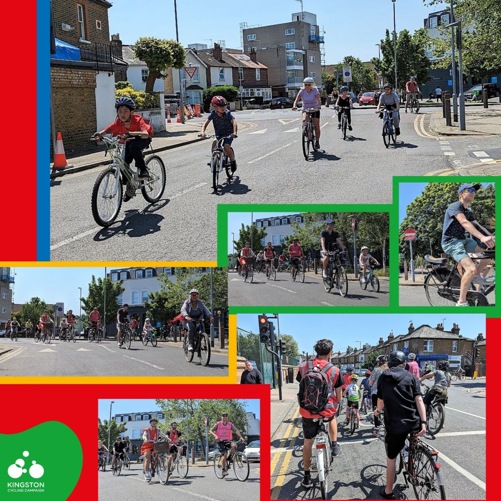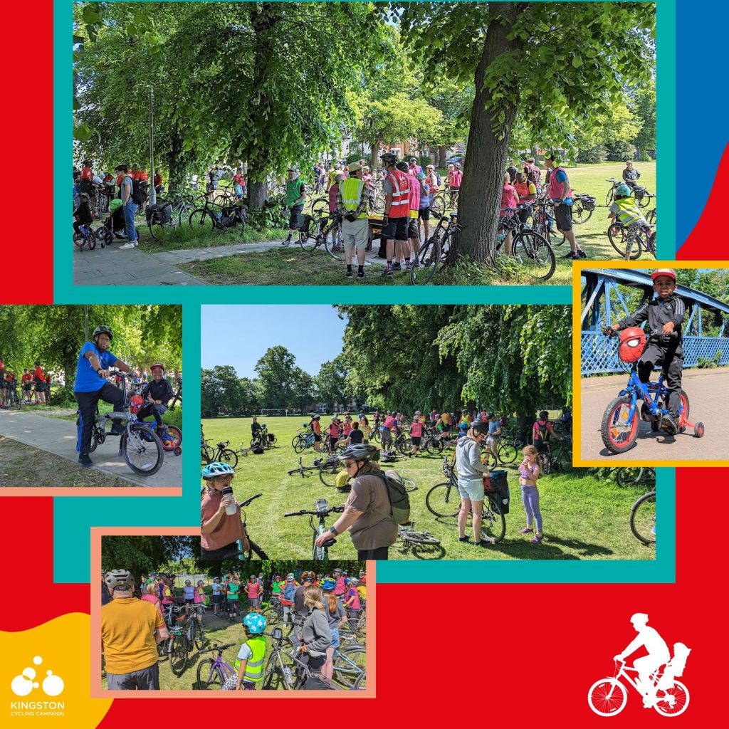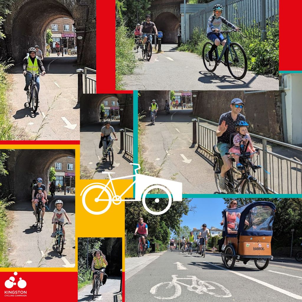 In a bid to encourage residents of all ages to safely enjoy Kingston’s roads and LTNs on two wheels, Kingston Cycling Campaign organised our first ever family-friendly bike ride on Sunday 4 June, to coincide with World Bicycle Day (3 June) and the start of Bike Week.