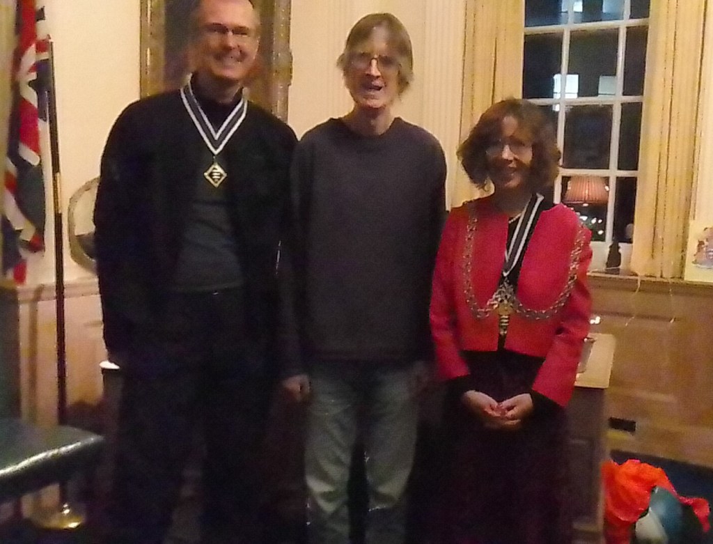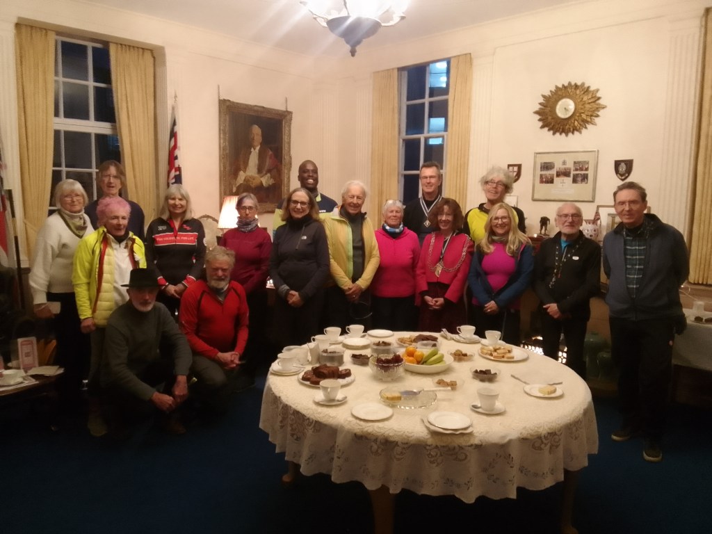 Part 2 With some very light Drizzle (or Mizzle), saying farewell to 8, hello to 5, 14 Cyclists left via Fairfield, Norbiton, New Malden, Raynes park, Wimbledon Chase, Cannon Hill Common, Motspur park, New Malden, Berrylands, Cranes park, to the Guildhall, -also with 2 special guests Johnβs Girlfriend Anita & his Brother Peter-, to share Tea & Bread Pudding with the Mayor of Kingston (Councillor White), in the Mayors parlour, also the Mayor said a few words in Tribute to our wonderful Bread Pudding maker, John Dunn, who has decided he needs a rest from Cycling & βslaving over a hot stoveβ, after almost 24 wonderful years, β I know l speak for all who joined todayβs rides, & all those who have ever enjoyed Johns company and/ or the delicious Bread pudding, we are going to miss you!! Total 12 Miles, thanks to Toni for back marking, very special thanks to John for the BP, thanks to Jon White, the Mayor & Brian the Mace bearer, for inviting us for Tea. Map:- www.plotaroute.com/route/2451305