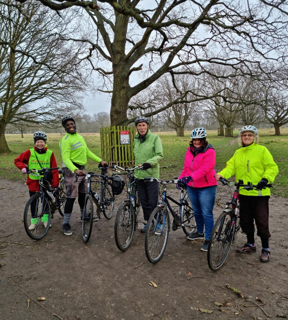 Sunday 20th February, a very blustery day, after five cancellations saw 16 Cyclists, split into 3 groups, -group 1 getting away a little to quickly for 1 member-, leave via a cleverly designed route, with many twists & turns, so we didn’t have too much Headwind, at least I think that was the reason 🙂, Cranes Park, King Charles Bridge, Surbiton, Long Ditton, Giggshill green, Thames Ditton, Molesey, Walton, Walton Bridge -group 3 joined by 1 more Cyclist-, Shepperton, Laleham, Thames Towpath, to Staines for lunch at the very Hospitable ‘Wheatsheaf & Pigeon’, (now with a nice Tailwind at times), Ashford, Feltham, Hanworth, Hampton Hill, to Bushy Park (Photo group 3) for Tea & Bread pudding at the Pheasantry, Hampton Wick, Kingston Bridge to finish. Total 28 Miles, Special thanks to Carl & Bai for leading groups 2 & 3, thanks to John E, Chris F, & Ellie for back marking each group, thanks to John D for the BP.