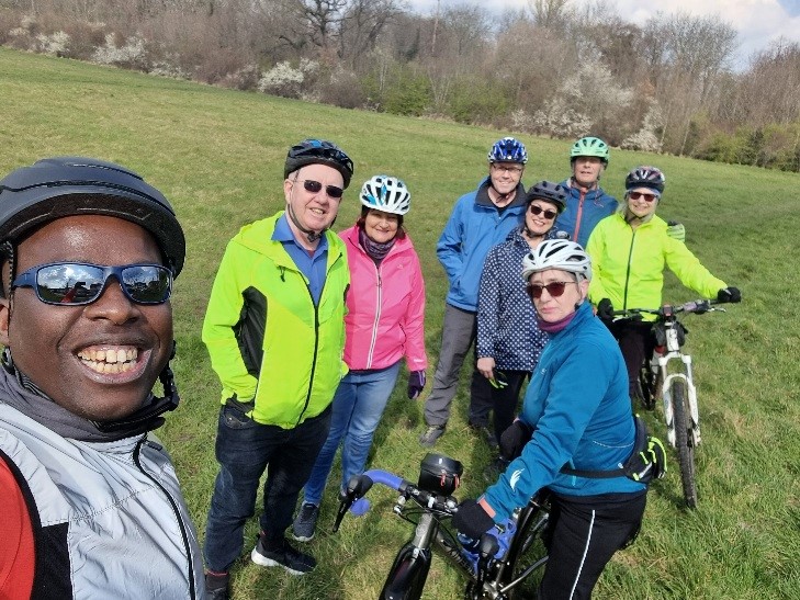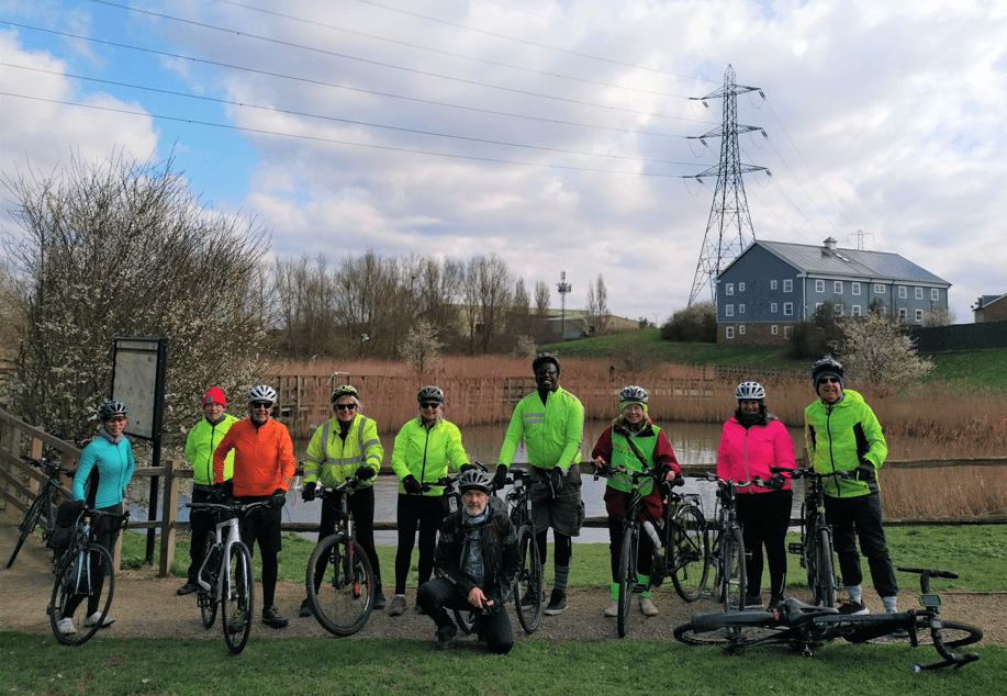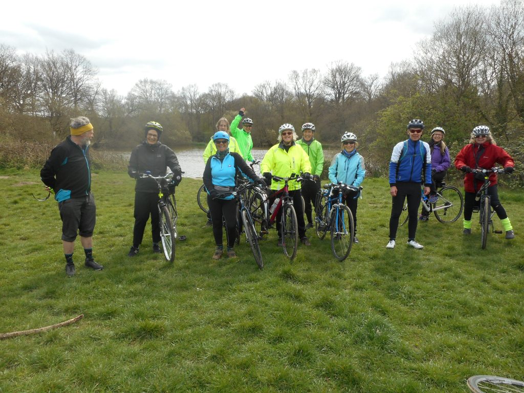 Sunday 18th April. After another long break, due to Covid a glorious Sunny Day saw 23 Cyclists, find 4 Leaders, so at 5 Minutes apart, via Portsmouth Rd Track, Long Ditton, Hinchley Wood, Claygate, Claremont -would the group leaders remember the clue-, Fairmile, Cobham, Hatchford, Ockham to West Horsley for a ‘Picnic Lunch’ at the ‘Barley Mow’, (as it was quite a struggle to find many Pubs doing Food just yet, after the latest Lockdown), Horsley Common (Photo), Effingham, Bookham, Fetcham & Pond (Photo’s Group’s 1, 2, 3 of course great minds think alike ), Ashtead, Epsom Common, Epsom, West Ewell, Stoneleigh, to Auriol Park for Tea & A Sumptuous Bread Pudding, Worcester park, New Malden, Berrylands to Kingston. Total 34 Miles, Very special thanks to Bai, Mags & Steve F for group leading, thanks to Mike, Andrea, Will & John E for back marking each group, special thanks to John D for the BP.