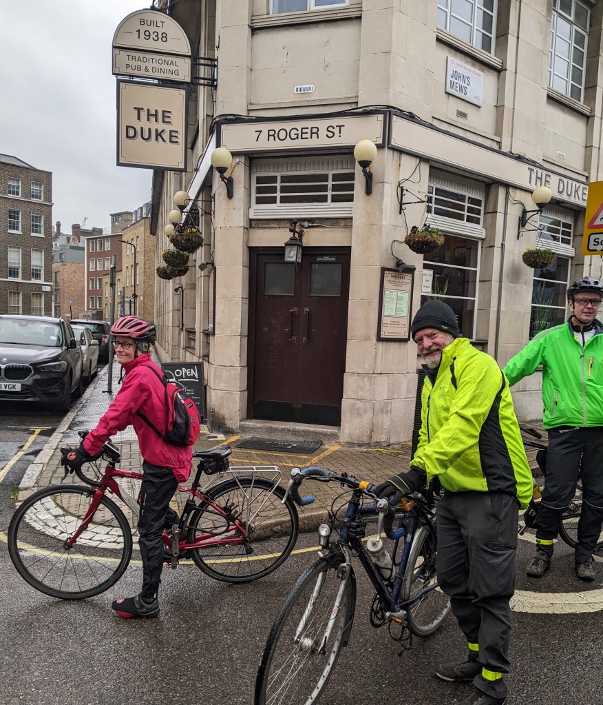 Wednesday 16th March, after 4 cancellations & 1 late addition, 13 Cyclists in 1 group, met at New Malden Station, with overcast Skies, but dry Morning, left via the Beeline, Raynes park, Wimbledon Chase, Wimbledon, Wandle Trail, Earlsfield, Wandsworth Common, Clapham Common, Stockwell,, the Oval, Lambeth, to Waterloo, to visit the ‘Pride of Lions‘ (Photo) that have dropped by for a visit, courtesy of Born Free, Cycleway 6 across Blackfriars Bridge, Farringdon, to see the site of the ‘Clerks Well‘, which gives the reason the area is called Clerkenwell for lunch at ‘the Duke’, – it just happens to be on ‘my Street’ 🙂 -, then with steady Drizzle, Bloomsbury, Marylebone, Hyde Park, Kensington, Brompton Cemetery, Fulham, Putney Bridge, Putney,- now with steady Rain, a strategic decision to change the Tea venue from Wimbledon Common,- Barnes Common, Roehampton to Roehampton gate Cafe for Tea & what’s this, Bread pudding, on a midweek ride, -rumour has it that Mr Dunn has let slip the recipe-, also some Chocolate Sponge fingers, Robin Hood gate, the Kingston Hill Cycle track, Coombe estate, to finish back in New Malden. Total 29 Miles, special thanks to Pete M for being prepared to lead a 2nd group, thanks to Mike F for back marking, thanks to Mike L for the BP, thanks to Tilani for the Fingers. Map:- www.plotaroute.com/route/1833775
