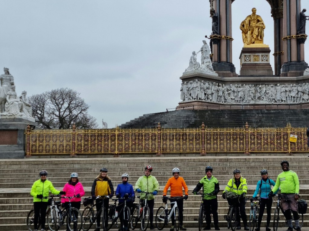 Sunday 23rd January. An overcast grey but otherwise dry day, after 2 Canncellations & 1 late addition, 18 Cyclists, in 2 groups, left via Skerne Rd, Latchmere, Ham gate Richmond Park, White lodge, -with group 2 suffering a visit from the ‘P Fairy’-, Roehampton gate, Barnes Common, Putney- with a ‘Sat nav misdirection for group 2, Putney bridge- with 1 more joining group 1-, Fulham, Parsons Green, Brompton Cemetery, South Kensington, Kensington Gardens, Hyde Park, Marylebone, -with a minor navigational hiccup for group 1-, to Maida Vale for lunch at the recently rebuilt Carlton Tavern ( link to Wikipedia), Kilburn, North Kensington, Shepherds bush, Hammersmith, Hammersmith Bridge, Barnes, to East Sheen for Tea & Bread pudding- Alas the Cafe had run out of Milk before the arrival of group 2-, Palewell Park Cafe, Sheen gate Richmond Park, to Kingston Gate, to finish back in Kingston.Total 29 Miles, 1 new face, Special thanks to Bai for leading group 2, thanks to Ellie & Andrea for Back marking each group, thanks to John D for the BP. Apologies, no Photo for group 1this time.