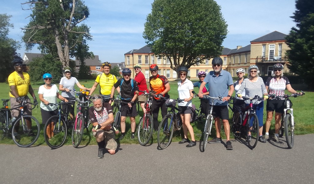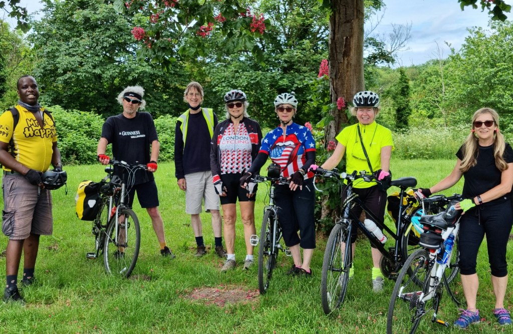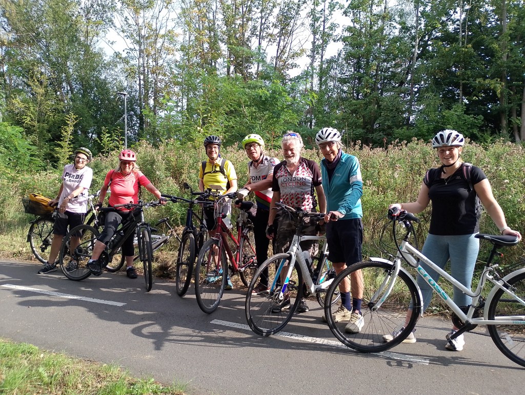Part 1. A mostly Sunny morning, after 3 late cancellations, a small group of 6 left via Lower Marsh, Berrylands, New Malden, Motspur park, North cheam, – with a rubbing Mudguard soon adjusted-, Cheam Park, Nonsuch Park (Photo), Stoneleigh, West Ewell, to Chessington, for lunch at the William Bourne (Stonegate pubs), Bonesgate path, Tolworth, – with time in hand, I had thought we might try part of the newly installed Cycle path on Ewell Rd, but 1 of the group said not worth it yet-, Surbiton, to finish back in Kingston. Sub total 16 Miles thanks to Mike F for back marking.