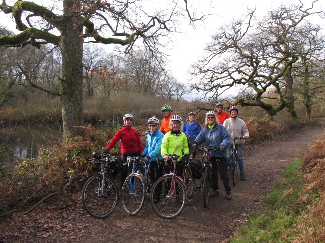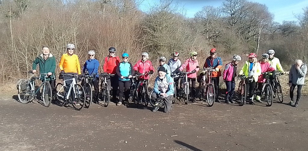 Wednesday 15th February. A mostly bright Sunny day saw 16 Cyclists leave via Portsmouth Rd, Long Ditton, Hinchley wood, Littleworth, joined by 1 more, Esher, Fairmile, Cobham, Downside, -with 2 almost making a break for freedom-, Bookham Common (including Isle of Wight & Photo)-, to Little Bookham for a Picnic lunch at Ye Olde Windsor Castle (Chef & Brewer), but no Chef today, so most had come prepared -at least the Brewer part lived up to expectations-, Great Bookham, Fetcham, Leatherhead, Ashtead, Ashtead Park, Epsom, to Alexandra Park for Tea & Refreshments at the delightful ‘Park view Cafe’, Ewell village- including having to dismount & walk as West St was being resurfaced 🙂-, Ewell Court Park, West Ewell, Tolworth, Berrylands to finish back in Kingston. Total 29 Miles, thanks to Chris F for back marking & others for marking corners.
