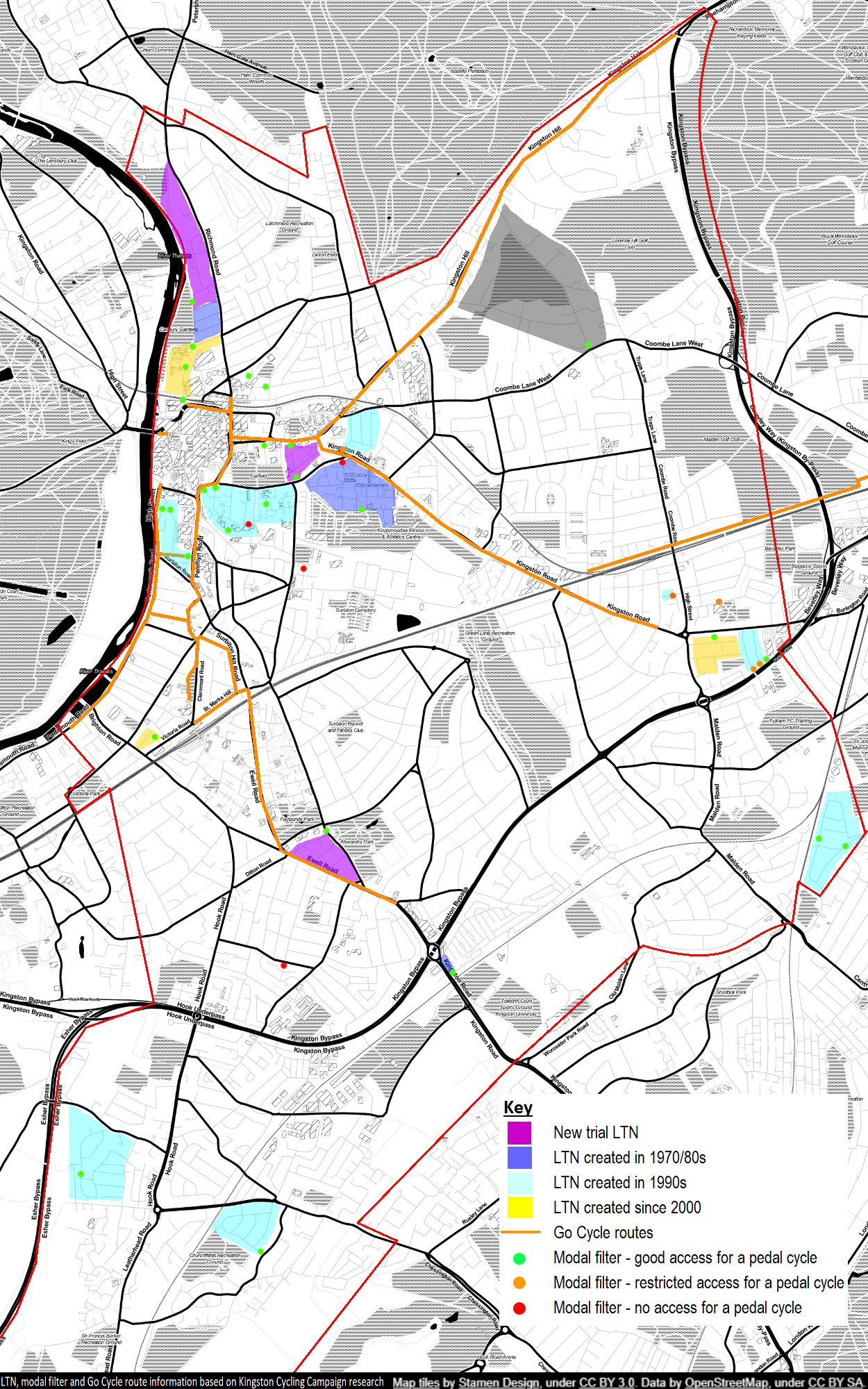 Kingston Council had already proposed introducing a Low Traffic Neighbourhood near Hook Road as part of their Healthy Streets plans. In addition, Transport for London has recently published a map of areas it thinks in Kingston could be made into Low Traffic Neighbourhoods based on their size.