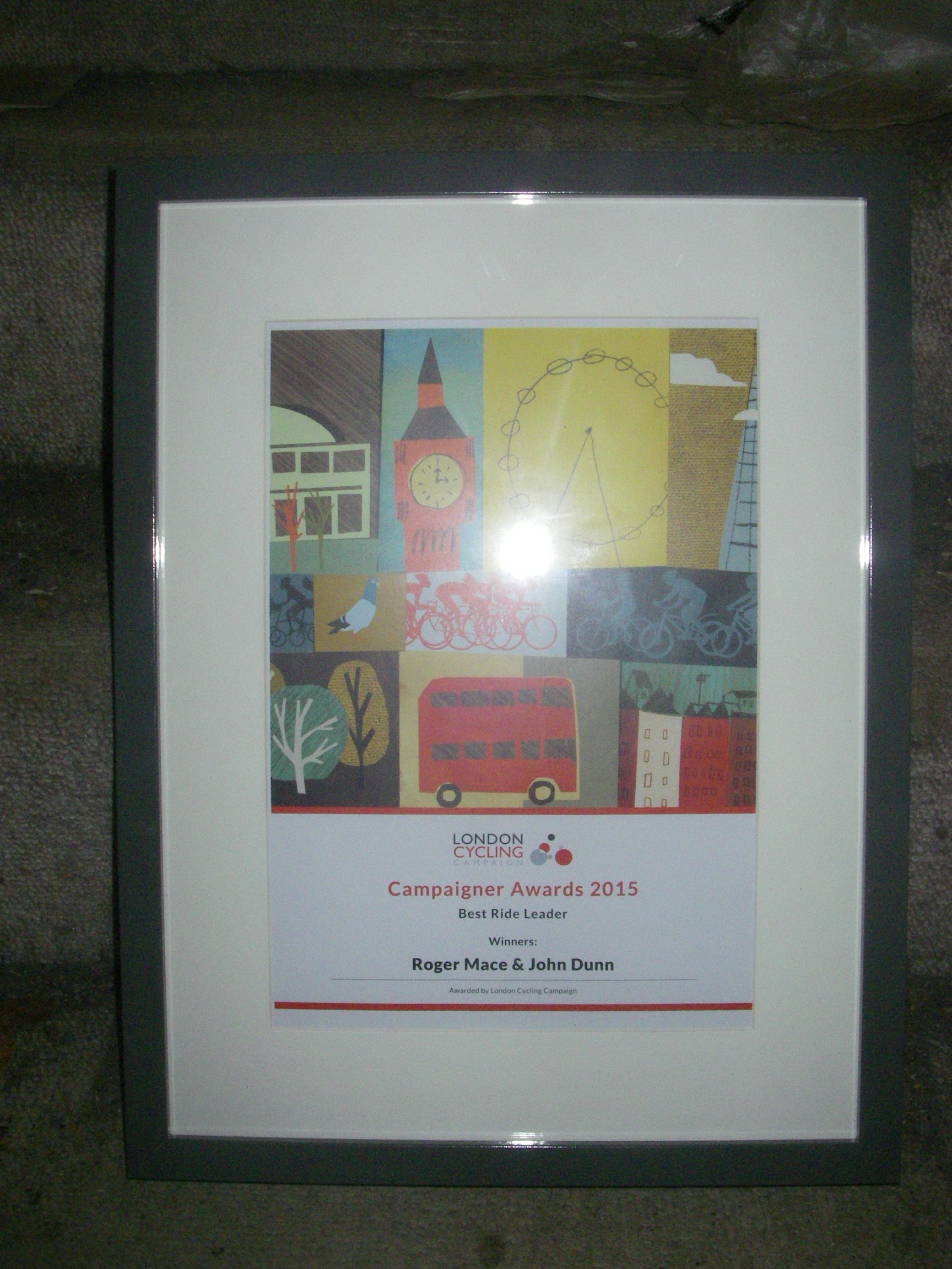 Thankyou ! Best Rides Leader 2015 – London Cycling Campaign A huge thank-you to everyone who has come out for a Bread Pudding ride this year, we are sure it was a large reason why we have been named as Ride Leader of 2015 by the London Cycling Campaign. John & Roger