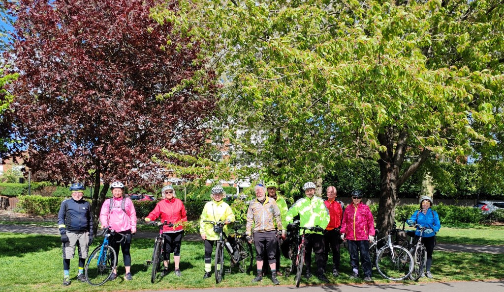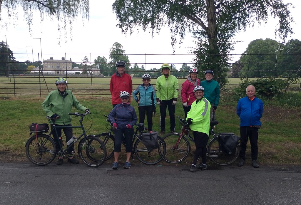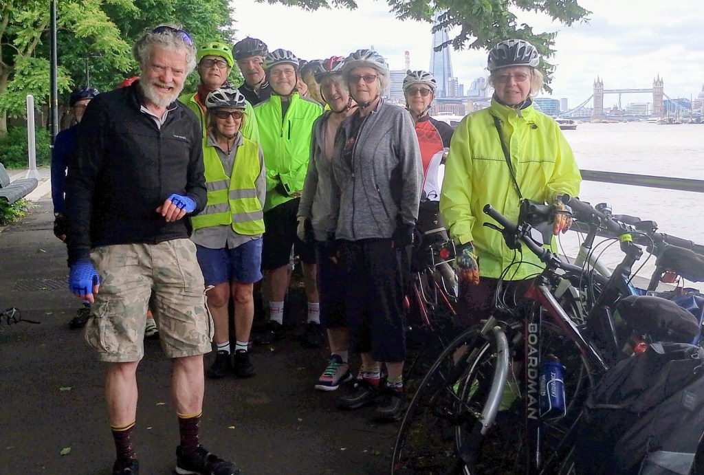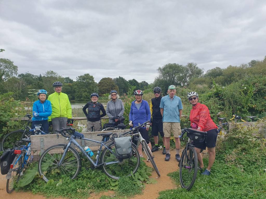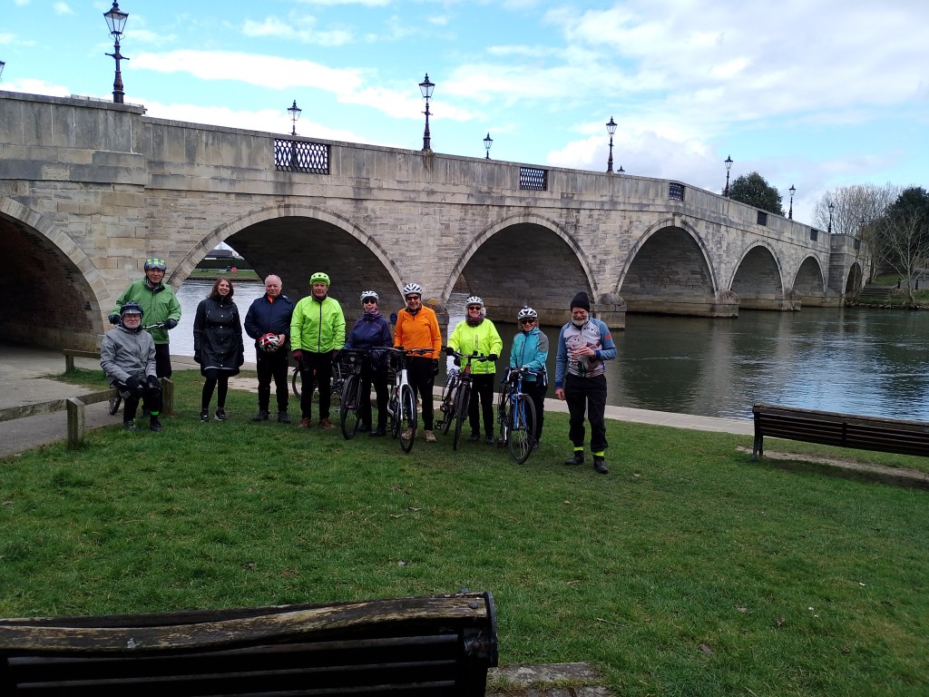 Wednesday 17th Deccember. After 1 late cancellation & 2 no shows, 19 Cyclists split into 2 groups, with group 1 led by the new ‘Joyful Cycling’ winner, (see separate post), making sure everyone had a smile before the start, into a rather chillly Headwind, via Portsmouth Rd Giggshill Green, -joined by 1 more for group 1 (20)-, Weston Green, Esher, Walton, Walton Bridge, Shepperton, Chertsey Bridge- where an impatient Van driver, in a queue of slow moving traffic, decided he needed to squeeze past, even though there was no room, causing 1 of group 1 to take a tumble, thankfully no serious harm or injury, but a displaced Mudguard needed some adjustment, and the Handlebar slightly askew-, so group 2 managed to sneak in front, after taking a Photo-, Free Prae Meadow, Thorpe village, Pooley green, Egham Hythe, Staines Bridge, for lunch at the George (Wetherspoons), Staines- with group 2 taking a turn slightly early, Group 1 almost snatching the lead back, but not quite, so time for a Photo instead-, Knowle Greeen, Ashford, Sunbury, Hanworth, Hampton, to Bushy Park for Tea & refreshments at the Pheasantry, now just 1 group, Hampton Wick, Kingston Bridge, to finish back in Kingston. Total 28 Miles, special thanks to Mags for leading group 2, thanks to Celia & Steve D for back marking each group.