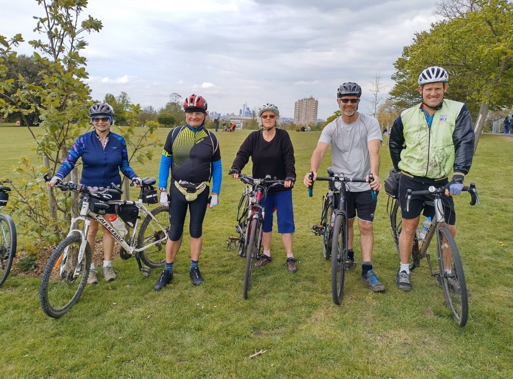 continuing via the Surrey Canal Path, Peckham, Dulwich, Brockwell Park, where an unfortunate coming together between 2 members of group 3, with 1 Bike unridable, & a slight Shoulder injury, meaning a Taxi ride home was the best option, thanks to members of Group 2/ 4, (if you’re keeping up), for there assistance, meanwhile ahead, due to an impromptu Loo stop, group 4/2 had briefly taken the lead, which was a surprise for group 1, Tulse Hill, Streatham Hill, Tooting Bec Common for a Tea & Bread pudding stop, Tooting, Mitcham, Morden Hall Park, Morden, Morden Park, Lower Morden, Motspur park, New Malden, Berrylands, to finish back at Kingston. Total 34 Miles. Special thanks to Bai, Carl, & Steve F for group leading, thanks to Toni, Steve D, Ellie & John E for back marking each group, thanks to John D for the BP.